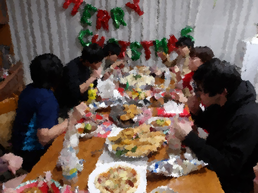 当日はクリスマスにちなんだ料理、ケーキ、お菓子など、お腹いっぱいになるまで沢山食べました。